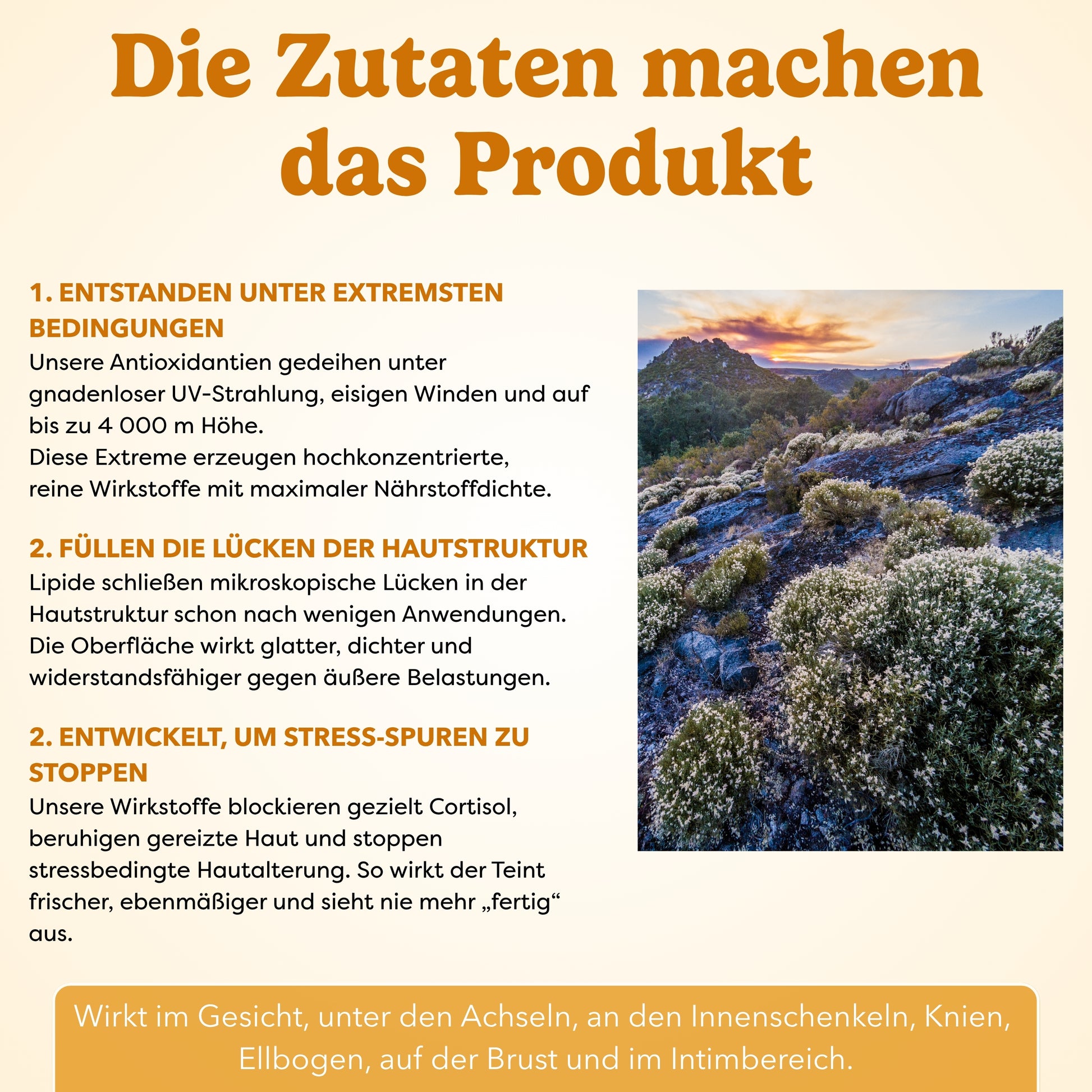 Reduziert cortisolbedingte Hautalterung und Rötungen für einen ausgeglichenen Teint.